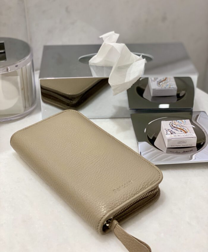 Aber nun zurück zur Kosmetiktasche. Die ein oder andere von euch erinnert sich bestimmt noch an die Grundschulzeit und die damaligen Mäppchen. Für jeden Stift, das Lineal usw. gab es eine Gummischlaufe in einem Etui. Dieses Prinzip hat Pericosa perfekt auf Kosmetik-Produkte übertragen. Herausgekommen sind zwei clevere Organizer aus feinem italienischem Leder. In den edlen Etuis ist alles an Make-Up-Utensilien griffbereit zur Hand. Es gibt zwei Varianten:
